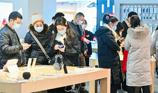 在蜀山區京東電器超級體驗店中,「年貨節」的活動宣傳隨處可見,洋溢着喜氣洋洋的節日氛圍。據合肥店總經理王春林介紹,元旦期間,京東開始年終大促,主促銷每滿300減40,其中賣得較好的是手機、電腦等數碼產品,以及彩電、冰箱等家電產品。據了解,元旦期間,京東電器超級體驗店合肥蜀山店銷售同比增幅14%,客流已恢復到同期9成。
