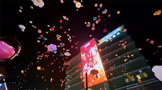 當2023年新年鐘聲敲響,無數只色彩斑斕的氣球在金大地東西街上空飄揚,此時此刻,它們象徵著一個個新年願望,共同迎接新年的到來。