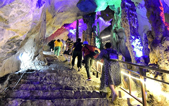 開幕式後,現場嘉賓和遊客在講解員的帶領下,饒有興緻地參觀了銀屏山景區,感受恆溫18攝氏度的天然避暑溶洞仙人洞的獨特魅力。形態各異、千姿百態的鐘乳石在景觀燈的裝飾下,顯得玲瓏剔透,讓人嘆為觀止。