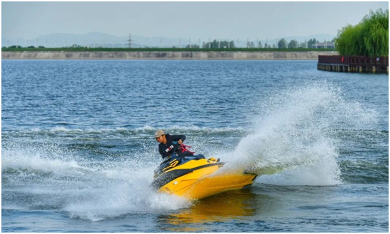 水上運動的速度與激情和尖山湖逸趣園的自然美景完美融合,為觀眾們帶來了全新的觀感體驗。等待體驗的遊客心裏也癢癢的,忍不住想快點試一試,享受乘風破浪的樂趣。