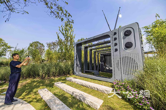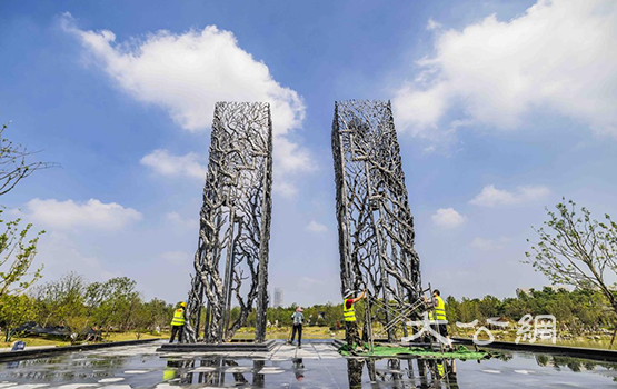合肥園博園中的安徽園標誌性徽派鐵畫雕塑「喜上人家」。解琛攝