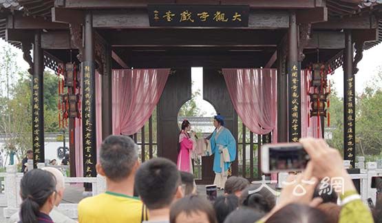 遊客在園博園安徽園觀看黃梅戲表演。韓鈺攝