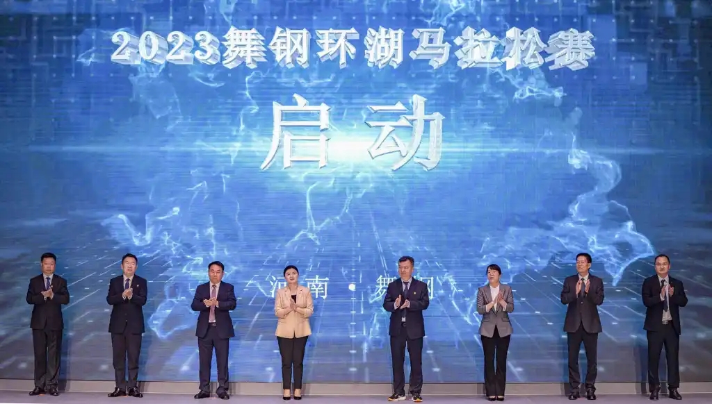 發布會最後,與會領導共同啟動2023舞鋼環湖馬拉松賽,預祝本屆賽事圓滿精彩。