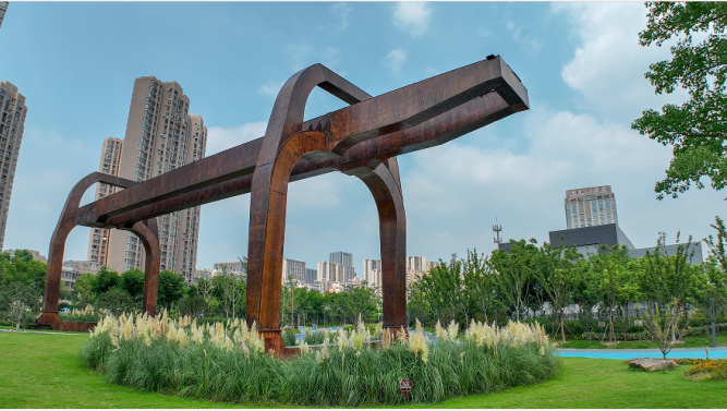 蜀山在打造公園時,堅持修舊如舊,將帶有歷史記憶的龍門吊保留下來。如今,長約50米、高約15米的龍門吊,成為南門庫景區標誌性的記憶元素,龍門吊龐大的體量彷彿宣告着過往輝煌,讓每個過往的人,都能感受到奮鬥年代的時代印記。