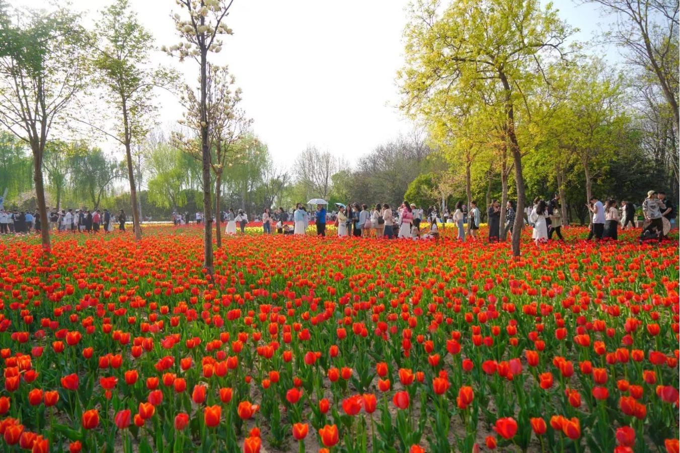 鄭州綠博園「問花節」百花爭艷,十二花神着一身華服,起舞於綠博園鬱金香展區內的問花節舞台,大地之丘露營季、稻草人農場「花田•好市」、頂頂牛牧場「油菜花藝術節」等活動,為遊客踏青賞春親近大自然提供了豐富多彩選擇,吸引十馀萬遊客前來體驗野外「趣」遊。