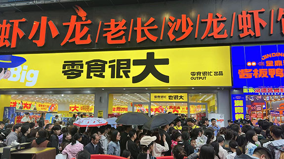 超級零食很忙「零食很大」零食店遊客爆滿,排隊進店時長長達三小時