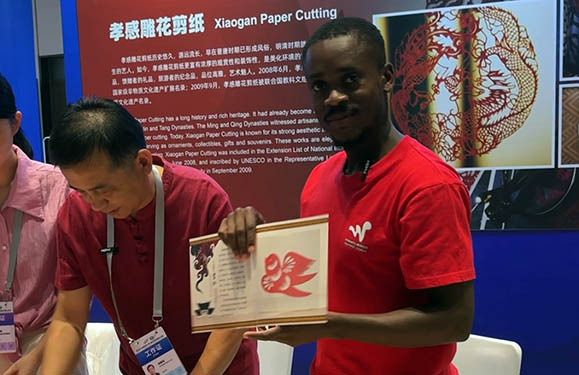 現場,來自湖南、北京、河北、四川等地31項絢麗多姿的非遺項目吸引了非洲各國青年朋友的目光。他們躍躍欲試,在非遺傳承人的指導下親身體驗中國古老、精美的工藝。