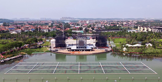 第三屆湖南旅遊發展大會主舞台在酃湖公園搭建中。李希平 攝