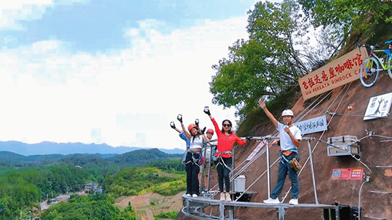 「Very stimulating!」「I have been there, it was very fun!」9月15日,一條「在懸崖上喝咖啡」的短視頻引發全網熱議,位於甘堰土家族鄉的紅岩嶺一時賺足眼球。今年5月,景區提質升級,正式開園,奇特的丹霞地貌輔以驚險的戶外項目,吸引9萬馀名遊客打卡。