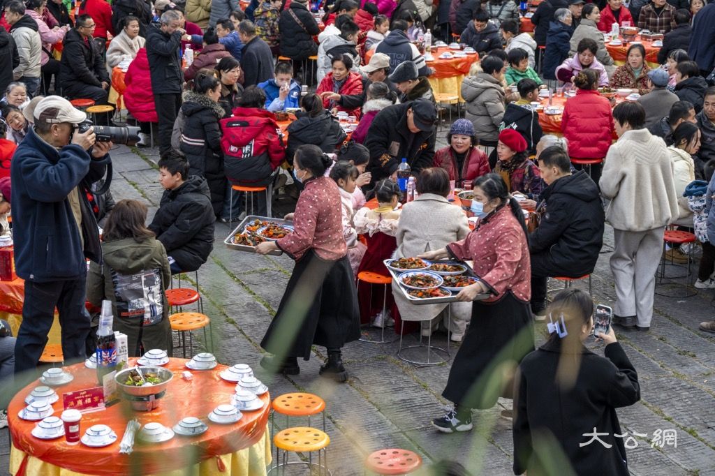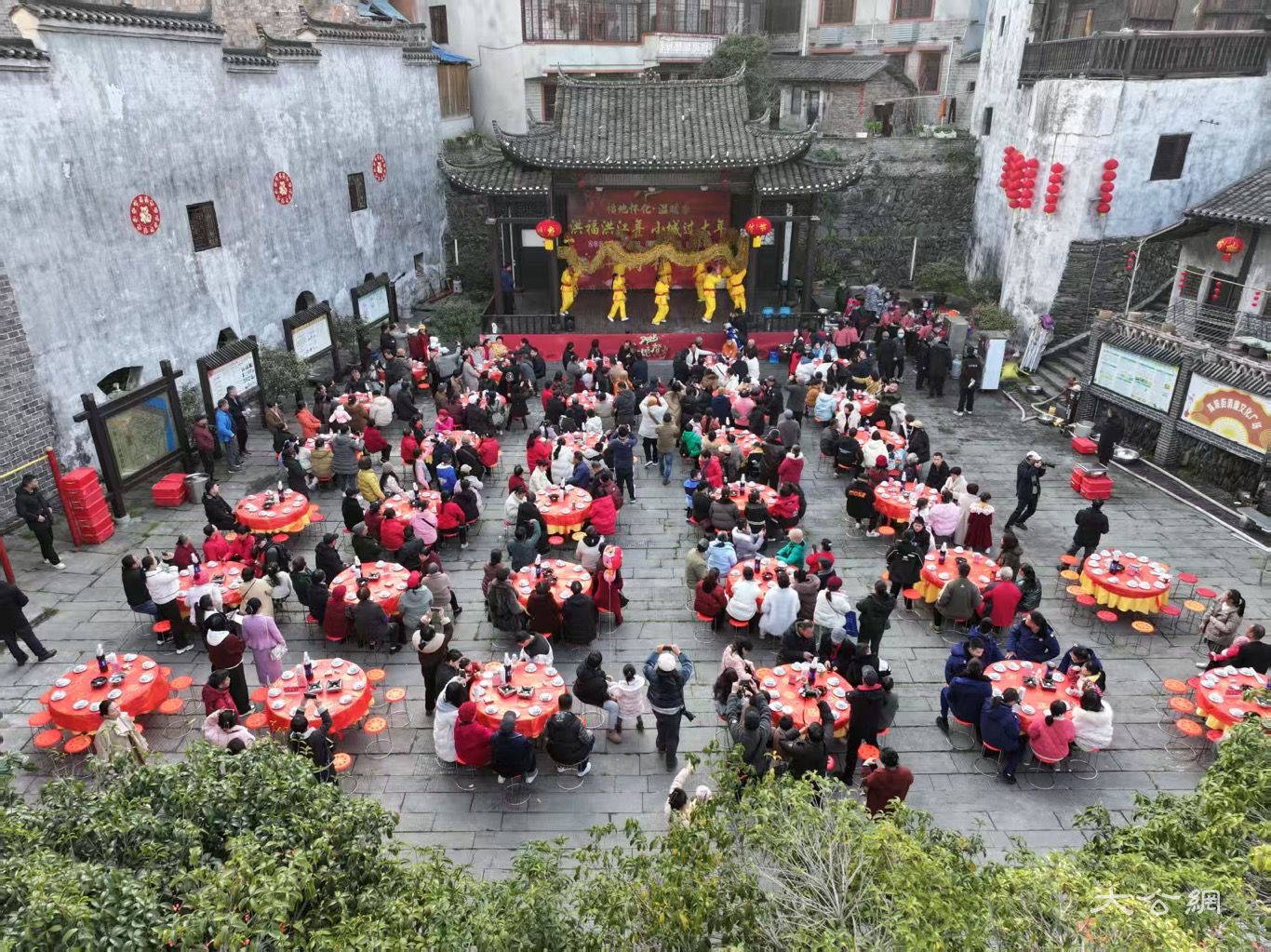 2月4日,農曆大年初七,湖南懷化洪江古商城內熱鬧非凡,獨具洪商文化特色的「洪商福宴」在高坡街文化廣場熱鬧開席,為當地群眾和八方遊客獻上了一場年味十足的文化盛宴。