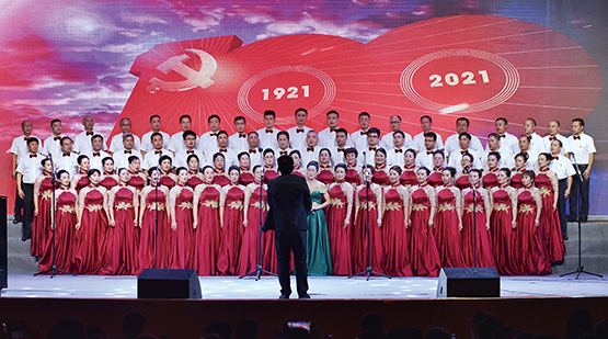 邵陽市綏寧縣幹部群眾在慶祝中國共產黨成立103周年合唱比賽上演唱《最美答卷》