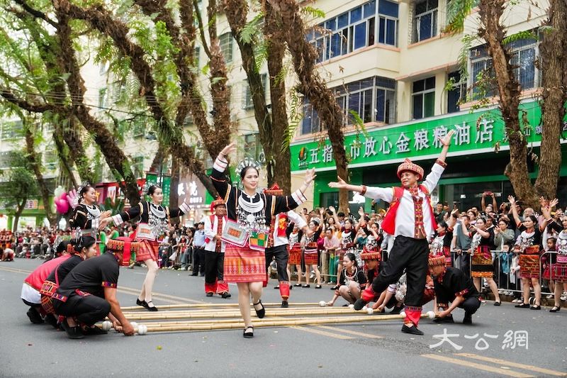 人民網五指山3月31日電 (記者李學山、孟凡盛)3月31日,2025年海南黎族苗族傳統節日「三月三」主會場活動在五指山市展開,龍舟賽、竹竿舞、「村秀」、黎錦苗綉展示等輪番上演、吸睛無數,充滿了濃郁民族風情的歡樂巡遊更是讓圍觀群眾參與感滿滿,熱鬧的節日氛圍讓這座山城萬人空巷。