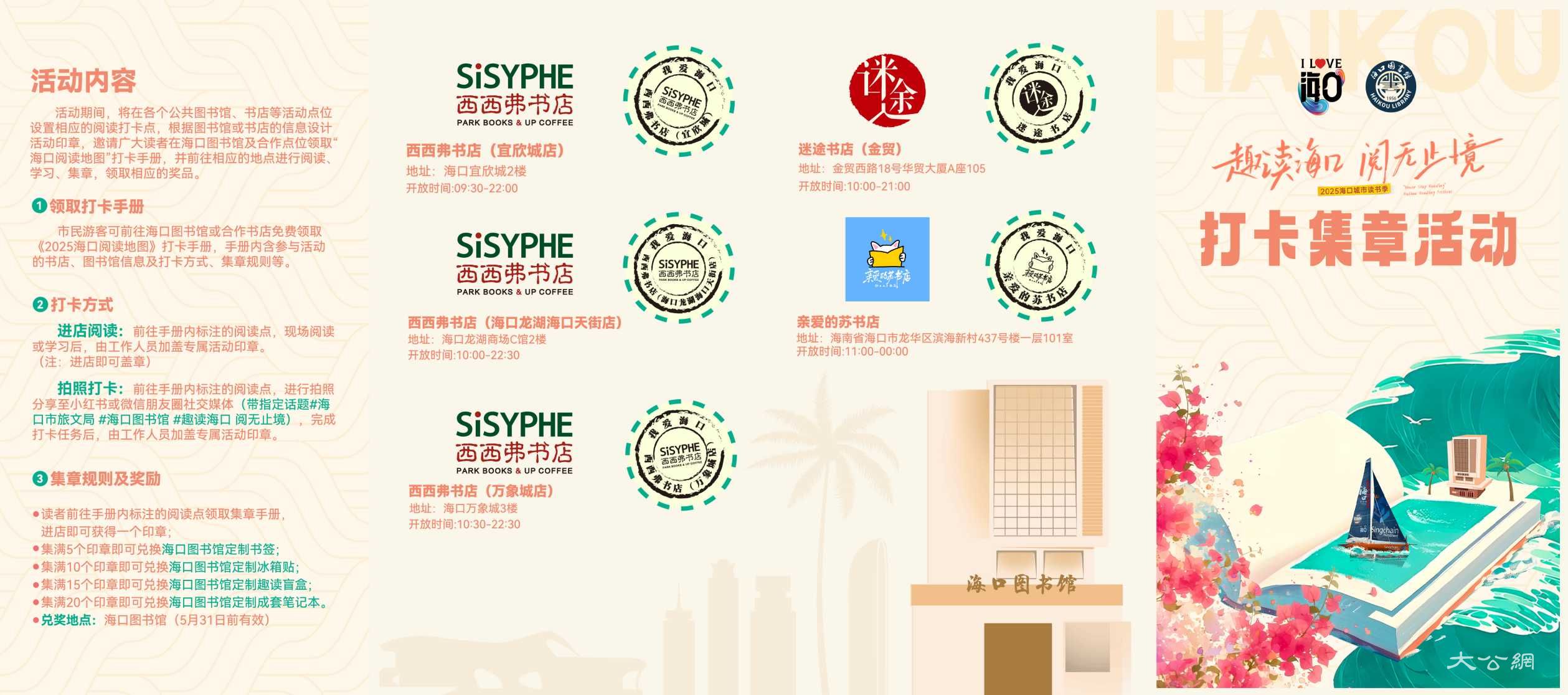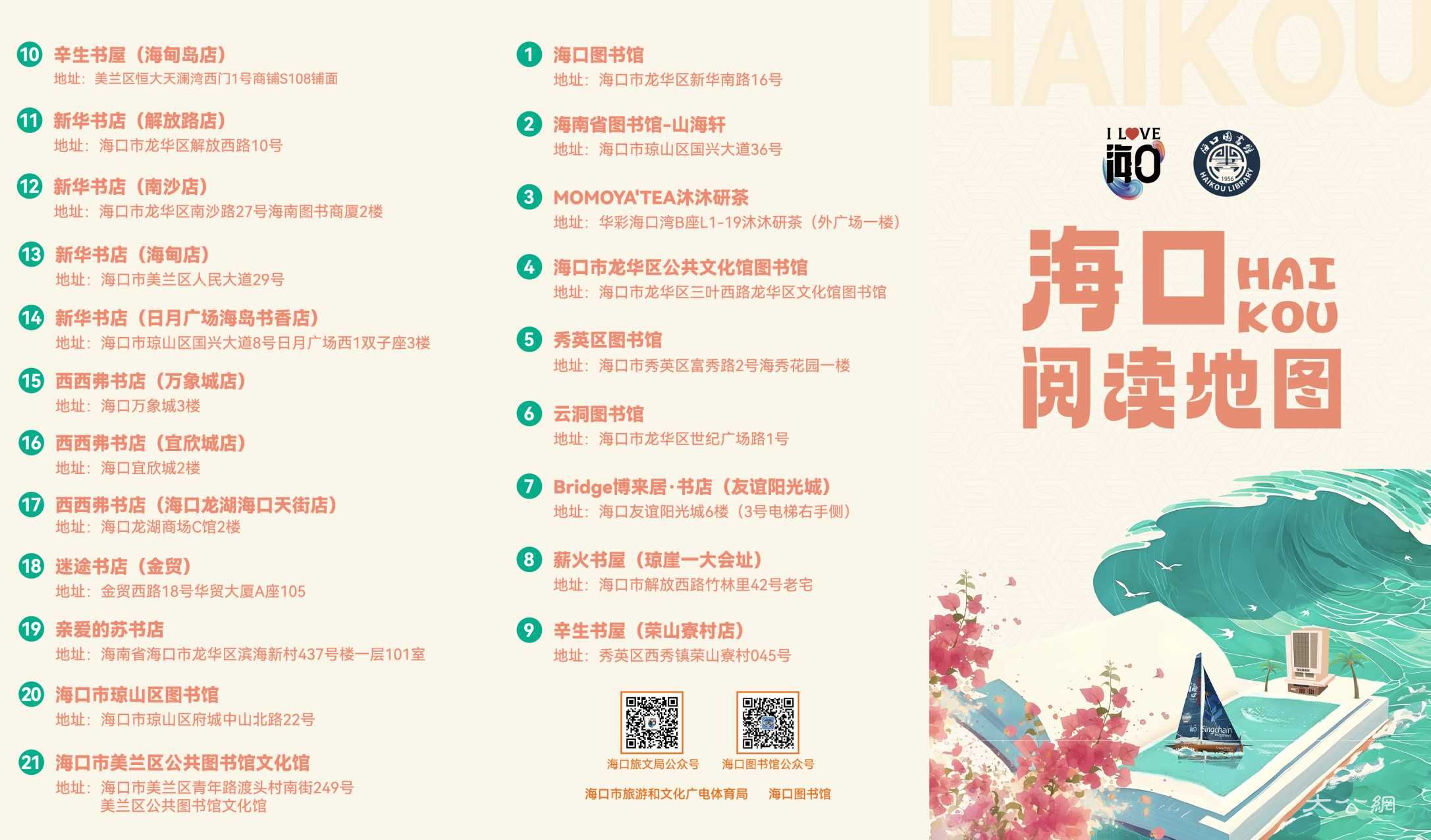 4月21日起,海口圖書館將聯合海口市內公共圖書館、新華書店,以及標誌性民營書店等一線閱讀點,推出「海口閱讀地圖」打卡手冊,為市民遊客閱讀指路,在海口開啟一場City Read。