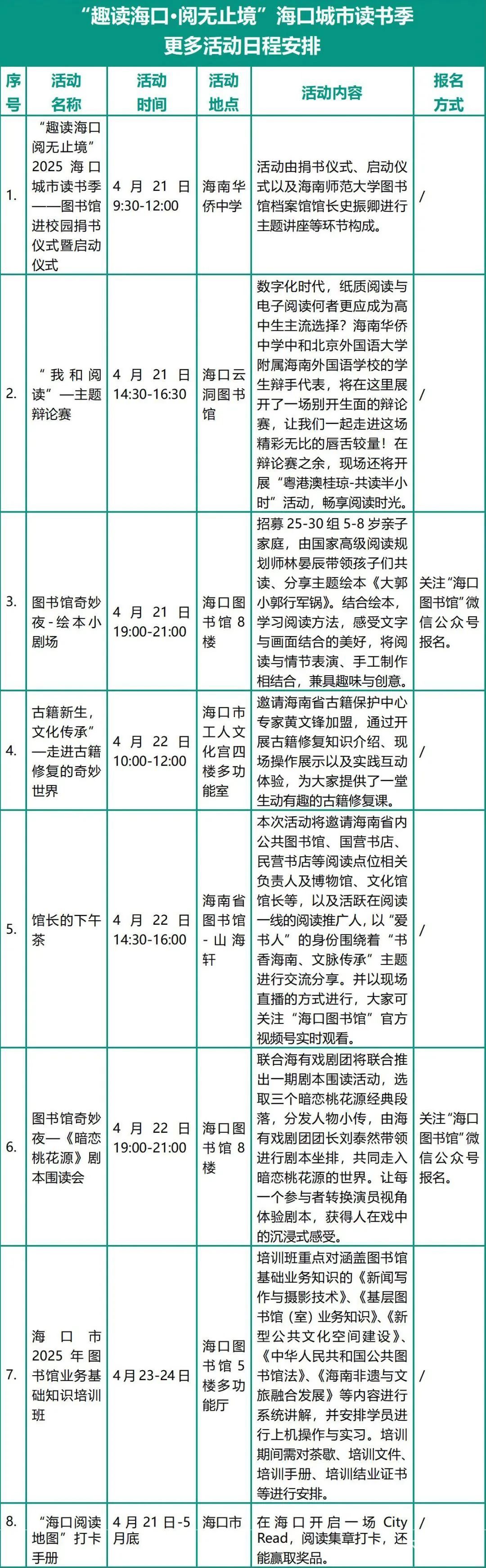 芳香春日,書香醉人,在第30個世界讀書日即將到來之際,由海口市旅遊和文化廣電體育局指導,海口圖書館主辦的「趣讀海口·閱無止境」海口城市讀書季活動將於2025年4月21日至24日火熱開啟。