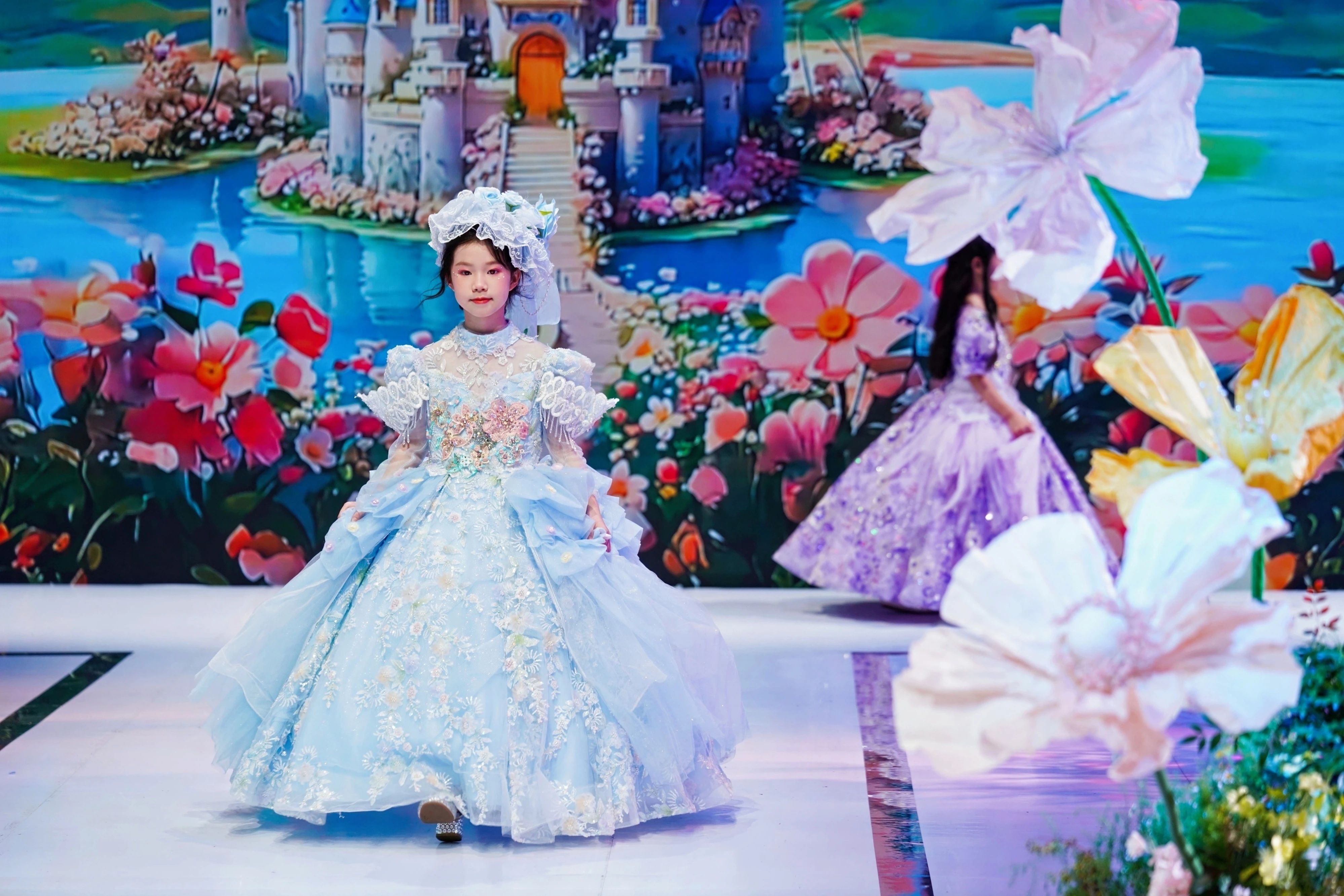 近百名童模身着夢幻禮服登台用自信的步伐、靈動的身姿在時尚舞台上盡情綻放