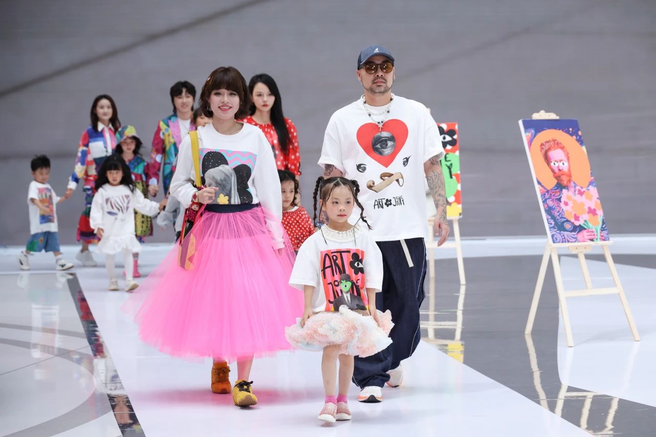 本屆消博會時裝秀少兒時尚嘉年華共舉辦了三場兒童秀,第一場由孩子們親手創作的畫作通過AI生成設計圖,呈現了「小小設計師」親子秀。