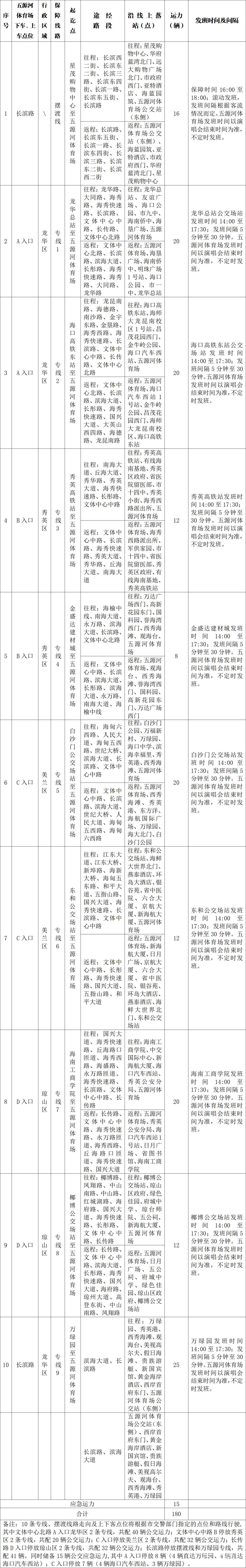 免費專線、擺渡線路明細表