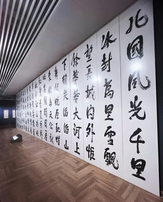 作品內容多為佛家勸人向善、積極樂觀、通達豁然的哲理、警句、格言。特別醒目的一幅鎮館之寶,絕無僅有的大師盲書巨幅真跡《沁園春·雪》,如此扣人心弦。星雲大師一生寫下三千馀萬文字著述。無論是散文、詩詞還是佛學論著、演說文稿,博大精深,匯成了文學海洋。