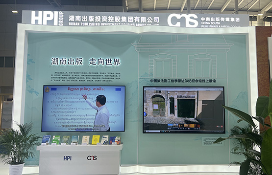 湖南出版集團攜「湖湘文脈」繫列集成性圖書及「走出去」戰略成果亮相(方景千 攝)