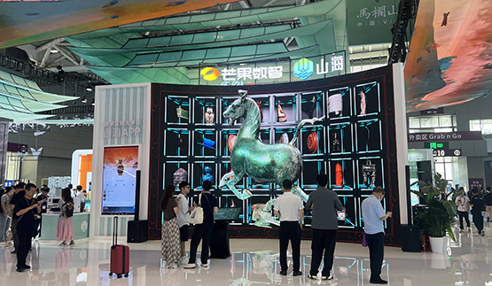 科文融合綜合展區,湖南廣電旗下芒果TV、芒果數智、芒果融創、芒果互娛等最新成果亮相(方景千 攝)