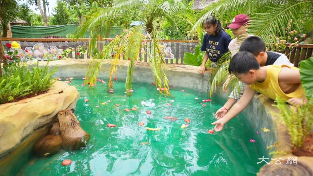 在海南熱帶野生動植物園卡皮巴拉「水豚」動物上新,開展繫列端午主題親子體驗活動以及科普課堂,大小朋友們前來探秘,共度歡樂親子時光。