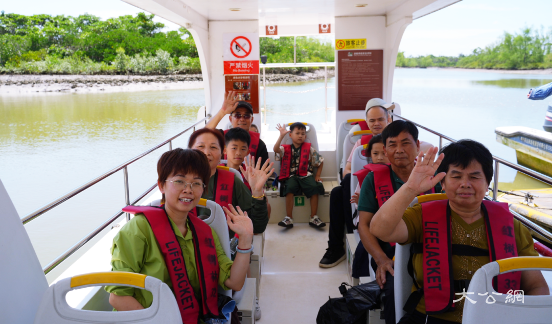 在東寨港紅樹林旅遊區裏,家長帶着孩子乘船沉浸式觀賞「海上森林」景觀,解鎖「抽獎轉盤」新玩法。觀瀾湖電影公社則是推出了全票通優惠+換裝體驗優惠,吸引了市民遊客前來體驗換裝打卡。