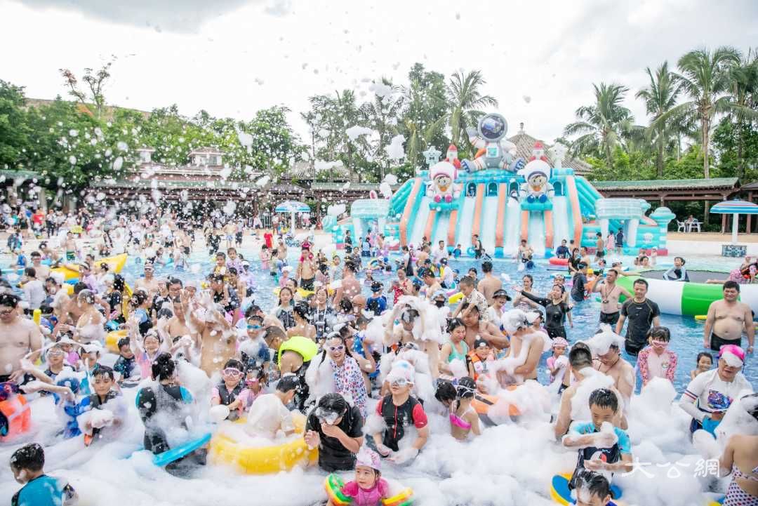 海口狂歡水世界也藉勢雙節盛大開園!眾多刺激的水滑道、歡樂的造浪池等設施也為遊客提供消暑降溫、盡情嬉水的理想場所,點燃夏日親水狂歡激情。