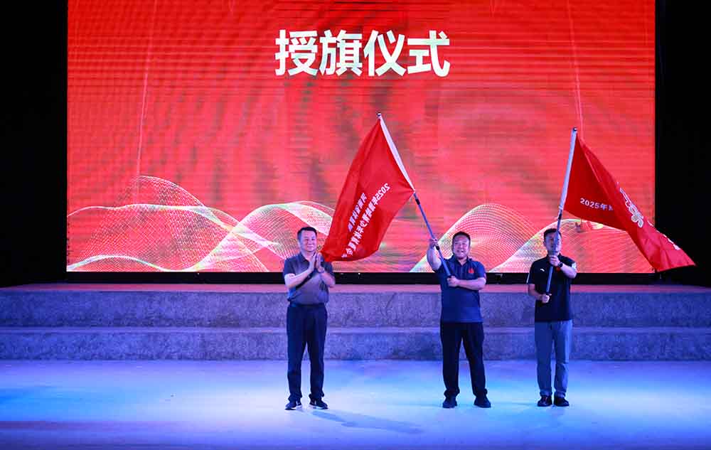 河南省體育局黨組成員、副局長李激揚向河南和哈密兩個團隊授旗(胡斌 攝)