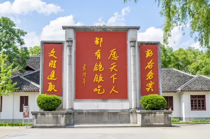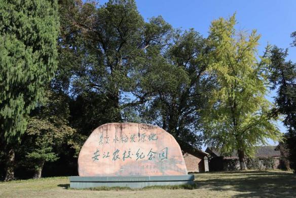 與遺址一江之隔的就是遠近聞名的安江農校紀念園,在這所園內,最引人矚目的是袁隆平題寫的「願天下人都有飽飯吃」的巨幅標語。