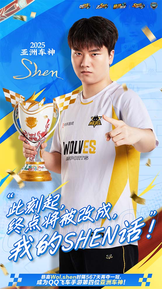 經過激烈的爭奪,在萬眾矚目之下,Wol.shen最終以2:0的比分戰勝eStar.Ani,成功登頂,獲得「亞洲車神」稱號,捧起湖南非遺定製冠軍獎盃——醴陵五彩·亞洲之翼。該獎盃由QQ飛車與湖南湘江新區企業湖南文悟科技公司精心打造,巧妙融合了湖南非遺醴陵五彩瓷以及源自馬王堆的西漢漆藝,將傳統工藝與電競精神完美結合,一經亮相便贏得玩家們的一致讚譽。