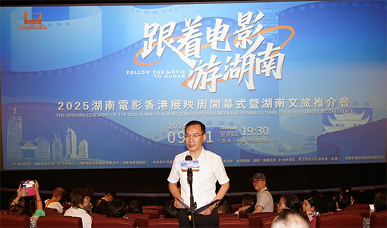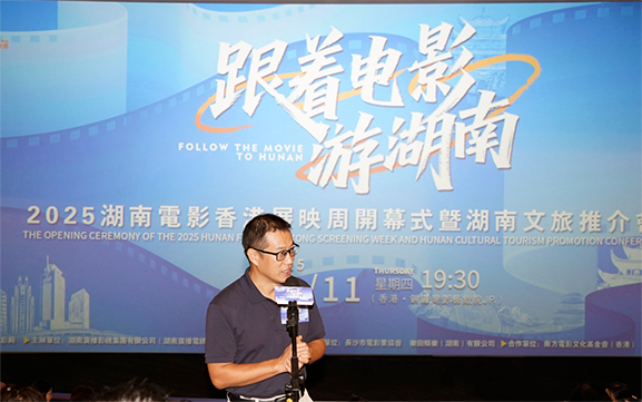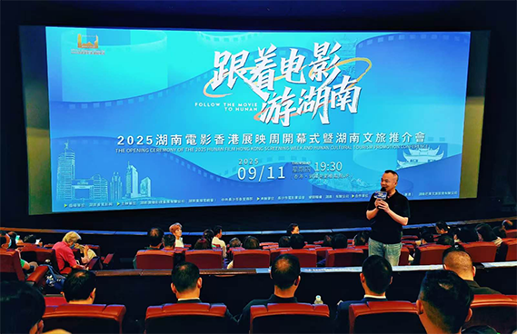 9月11日晚,由湖南省電影局指導,湖南廣播影視集團有限公司(湖南廣播電視台)、中共長沙市委宣傳部攜手主辦,長沙市電影業協會、樂田娛樂(湖南)有限公司聯合承辦,南方電影文化基金會(香港)、湖南芒果文旅投資有限公司合作支持的「跟着電影遊湖南」2025湖南電影香港展映周開幕式暨湖南文旅推介會在香港銅鑼灣影藝戲院JP舉行,匯聚湘港兩地電影產業精英、政府代表等與香港影迷,共同開啟一場跨越山海的光影對話。