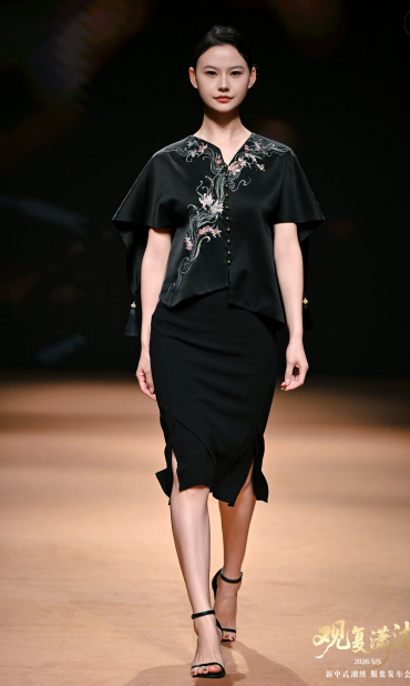 本場發布會以「花竹、山水、湘虎」三大篇章為主線,依次呈現了六大繫列共56套新中式湘繡服飾。這些作品在簡約美學與實用性之間取得完美平衡,一改傳統非遺的厚重感,以簡約實穿作為新中式風格的核心內涵。設計團隊從楚辭的詩意境界、宋畫的光影韻律等傳統文化維度汲取靈感,讓湘繡技藝深度融入現代日常着裝,實現了非遺從高定秀場到日常衣櫥的華麗轉身。