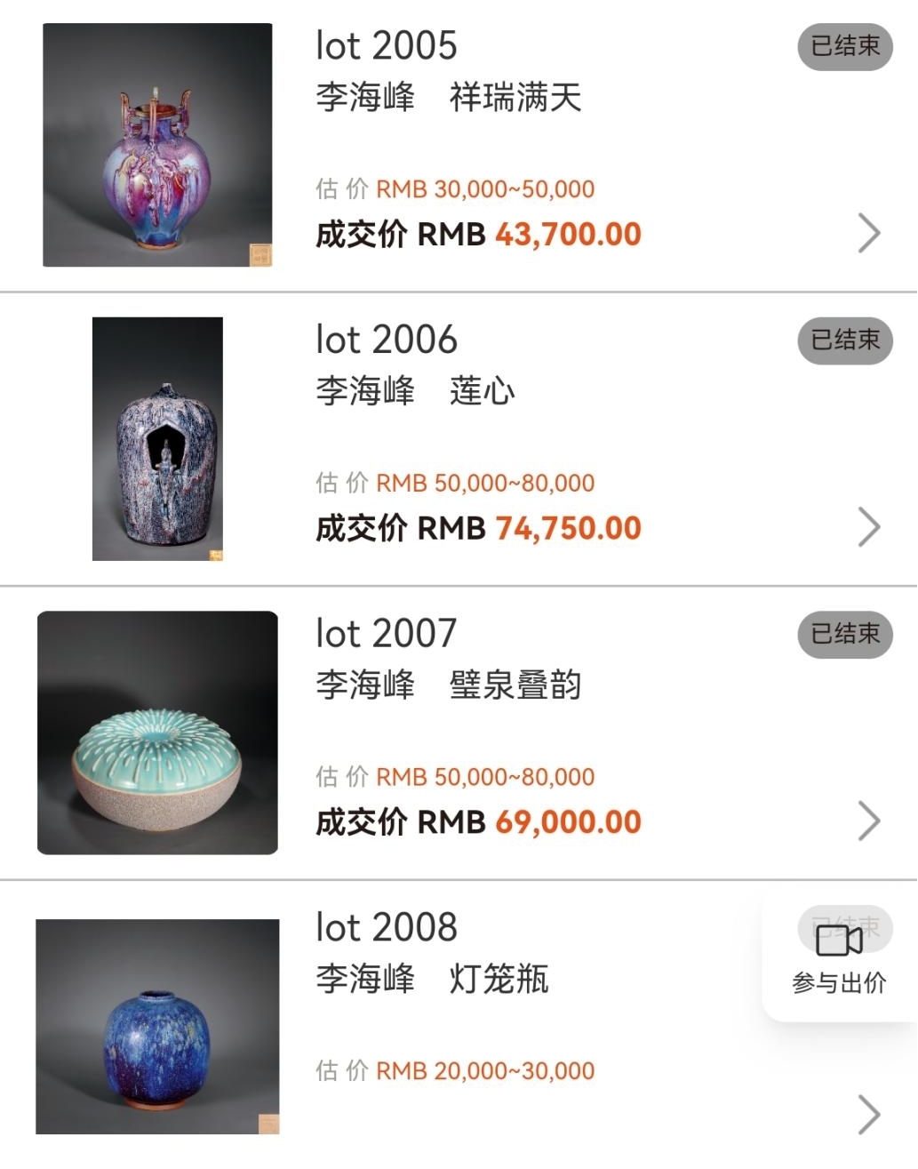 保利拍賣相關負責人表示:「李海峰大師的作品近年來在藝術品市場持續受到關註,今天的拍賣結果再次證明當代鈞瓷藝術正獲得越來越多收藏家的認可。這三件成交作品不僅工藝精湛,更融入了藝術家對傳統文化的現代詮釋,具有很高的藝術價值和收藏價值。」