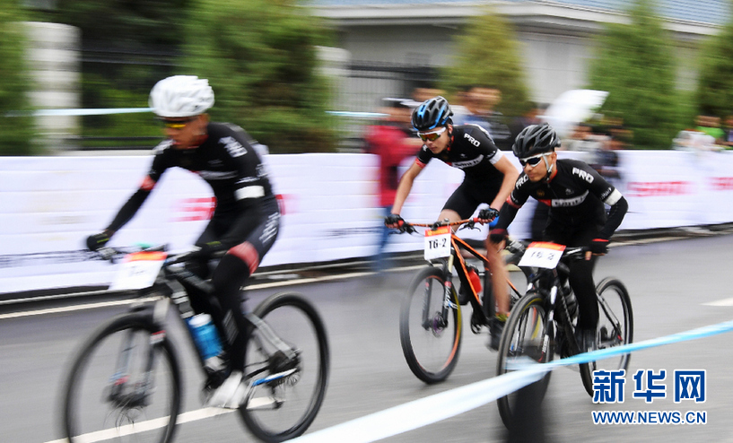 7月19日,唐仲義(右二)在2019甘南藏地傳奇自行車賽比賽中。新華社記者陳斌攝