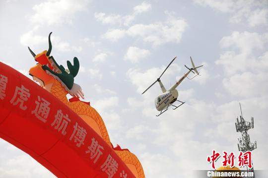 中新網新疆博湖7月29日電(年磊 何陽)新疆博湖縣于28日舉行北方華錄簽約蓮海世界景區暨翼虎通航博斯騰湖站首飛儀式,這標誌着博湖縣直升機低空旅遊項目正式開啟,遊客可乘着飛機遊覽博斯騰湖美景。