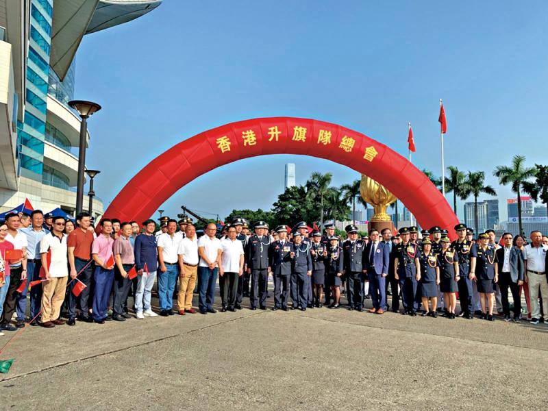 昨日的升旗禮由香港升旗隊總會主持,總會會長郭二澈、主席周世耀、總監許振隆、新界西分區總監黃鳳意、理事伍煥傑都有出席見證;其餘嘉賓包括香港島各界聯合會理事長、全國政協委員蘇長榮太平紳士等。