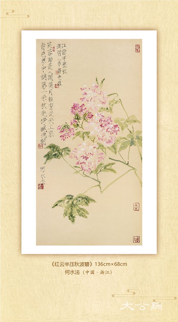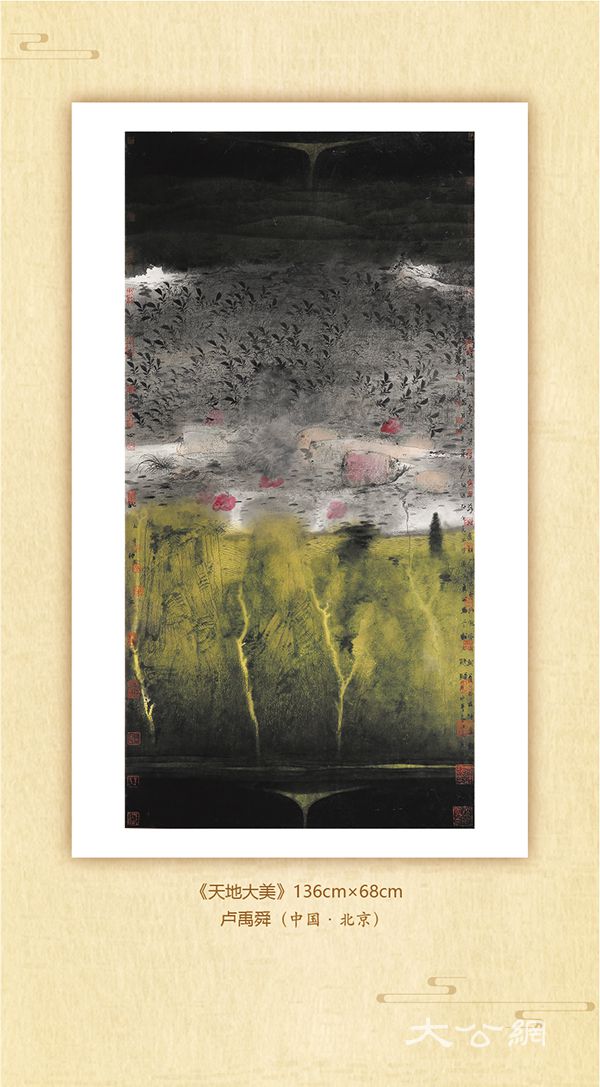 在這次書畫展覽的作品中,共展出全球30多個國家和地區的180多幅作品。作品有台灣政要洪秀柱以及港澳台地區書畫家作品,也有來自英、美、法、俄、日、韓等國的華人書畫作品,有國內名家蘇士澍、覃志剛、范曾、楊曉陽、宋華平、馬國強、周俊傑、楊傑、王西京、何水法、王有政、盧禹舜、范揚、劉傑、孫廣舉、張國臣等文化名人和書畫家的作品。