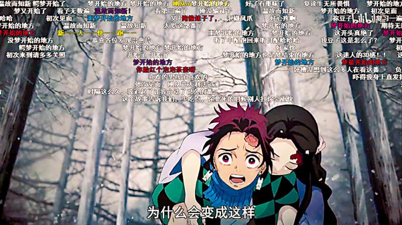 B站網友邊看《鬼滅之刃》邊發彈幕交流