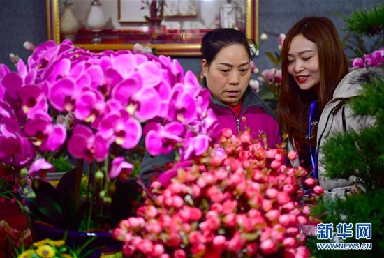 1月9日,市民在西安年貨節上選購花卉。 春節將至,不少西安市民來到第十八屆西安年貨節現場置辦年貨,喜迎新春。 新華社記者邵瑞 攝
