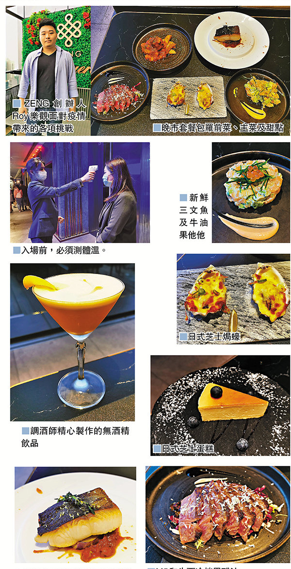 在近日疫情愈來愈嚴重下,政府在餐飲業上實施各項防疫措施,身為ZENG創辦人Roy Li為了食客吃得安心,除即時執行做足政府相關的防疫指示,亦早於酒吧群組發生之初,他已即時為餐廳作出應變,將本來晚間以酒吧及單點小食為主的方式,轉為專注於食物出品,推出晚市套餐,並與多個平台合作,正面推廣餐廳美食,從外賣中吸引更多食客,希望大家都能走出陰霾,趕走負能量,吃得開心,願大家健康平安!