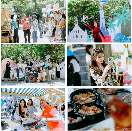 活動場地內,用菲律賓知名文化與旅遊標誌打造的微縮景觀,再次喚醒觀眾對菲律賓的記憶,吉普尼、椰風海浪、鯨鯊等充滿菲律賓特色的元素吸引到此打卡的觀眾絡繹不絕。而在美食節主會場,原汁原味的菲律賓美食市集熱鬧非凡。傳統菲律賓菜品、菲式燒烤、冷飲等不同種類的攤位也是各顯其能,多汁香脆的烤乳豬「Lechon」、味道鮮濃的菲律賓腌制燉肉「Adobo」、甜蜜清新的哈嘍哈嘍刨冰「Halo Halo」等紛紛登場亮相,空氣中瀰漫著各種美食的味道,觀眾們穿梭於各個攤位,饒有趣味地選擇自己喜愛的食品,大快朵頤。