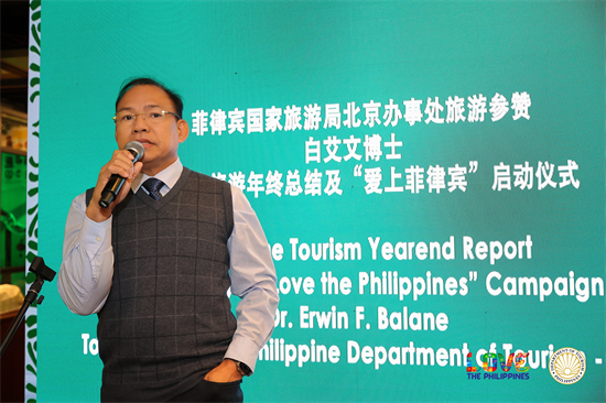 菲律賓國家旅遊局北京辦事處旅遊參讚白艾文博士於活動現場正式介紹併發布了菲律賓國家旅遊局全新品牌「愛上菲律賓」。這一全新品牌,將重點展示菲律賓所有值得「愛」的方方面面。白艾文博士說道:「菲律賓國家旅遊局於2023年發布全新的宣傳品牌-愛上菲律賓。該全新品牌標誌由菲律賓各水下景觀、傳統節日、特色美食、美麗海島等標誌性元素組成,旨在讓更多遊客從文化、傳統、美食、美景等多方面了解菲律賓。」