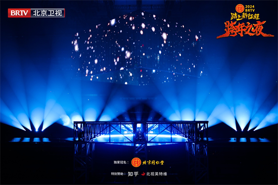 在北京冬奧會舉辦一周年之際,北京衛視跨年演唱會創新地將「冬奧遺產」與「文體活動」緊密結合,選址北京新地標國家速滑館「冰絲帶」,打造「冰絲帶移動畫卷」舞美主視覺,利用3D立體機位雕琢光影,呈現音樂化境。