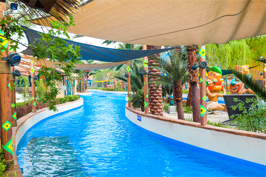 園區內遮陽面積佔到全園硬質鋪裝面積1/3,解決防曬「痛點」。傳送帶運輸遊樂設備所需乘坐的浮筏,最大程度為遊客減負。除常規淋浴區外,還配有家庭淋浴。池底選用天然材料生產的彈性地磚,提升遊客觸感,降低滑倒概率。此外,園區採用珍珠岩進口過濾水處理設備,13000立方米的水體每隔0.5-2.5小時循環消毒凈化一次,並定時水樣抽檢。公園採用光伏利用、綠色建造、智能化能源轉換繫統,預計全年可再生能源利用比例達20%,每年減少二氧化碳排放650噸。