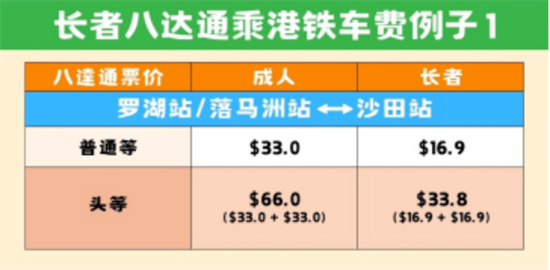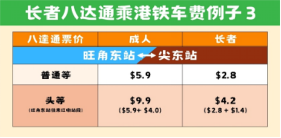 值得註意的是,香港政府由8月25日起,規定「二元乘車優惠計劃」只有使用樂悠咭的香港居民(包括長者及合資格殘疾人士) 才可享用。不過不用擔心,年滿65歲的內地旅客使用長者八達通可享長者特惠票價,不僅乘港鐵跨境能享受約成人半價的票價,乘坐港鐵其他車程也能享受此優惠!符合資格的長者可前往港鐵客務中心或認可經銷商租用長者八達通;如果使用特惠乘車碼也可享用特惠票價乘港鐵,不需要特意購買長者八達通,詳情可參閱八達通官網。