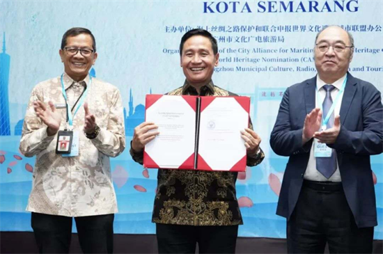 在印尼三寶壟站,市長阿古斯緹娜非常重視,在市政府安排會見並簽署加入海絲申遺城市聯盟的申請書,在絲路花語推介會期間遞交廣州代表團。