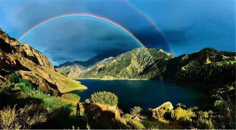 庫車市大小龍池景區的彩虹,夠彩吧?
