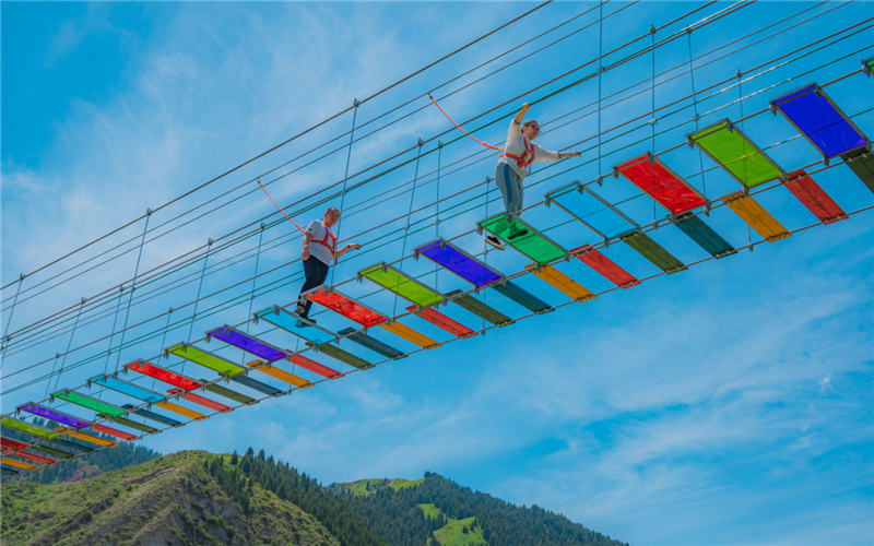 歸園田居·塔村網紅項目彩虹弔橋。