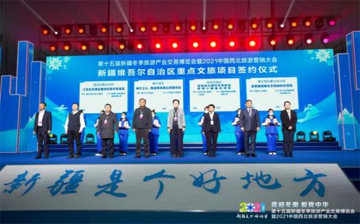 11月27日,第十五屆新疆冬季旅遊產業交易博覽會暨2021中國西北旅遊營銷大會舉行重點文旅項目簽約儀式。喀納斯旅遊軌道交通項目等8個項