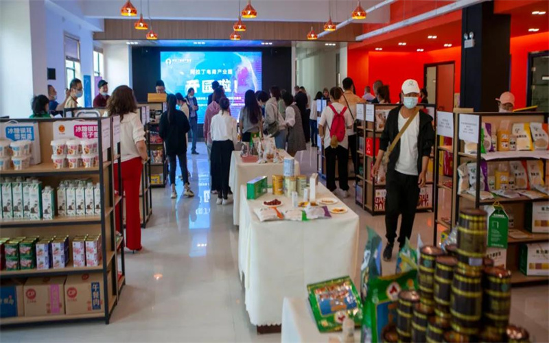 選品會上,通過阿拉丁文化電商產業合作交流群以直播、在線連麥,試吃等方式全面展示了園區布展的企業產品。